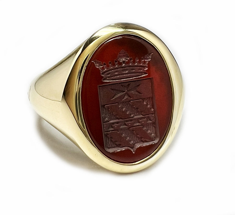 In this collection always updated with new models, you will find chevaliers, seals, rings with personalized engraving, with family coats of arms on request. Each seal is tailor-made and hand-finished by master goldsmiths. The heraldic engraving of logos or monograms is carried out with the most modern techniques and without neglecting the hand engraving with a burin under the microscope. Before ordering you will be able to choose the shape of your seal even if it is not present in the catalogue, you will see the structure of the ring but not the engraving, as it is not produced by microfusion which would result in a poor quality product.